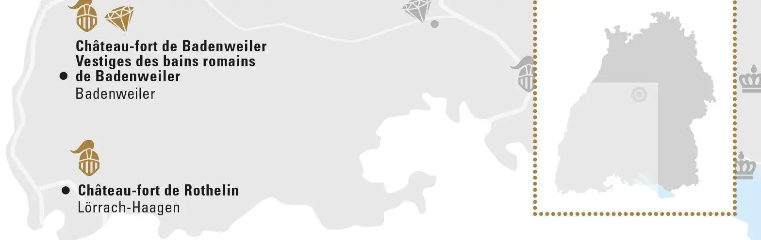 En bordure de la Forêt-Noire et non loin de l'Alsace et de la Suisse, des ruines vétustes témoignent de plusieurs siècles d'histoire : des vestiges des bains romains de Badenweiler au premier château puissant des margraves au-dessus de Baden-Baden.