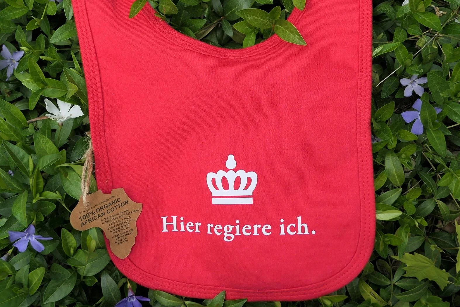 Die Lätzchen schützen nicht nur die kleinsten vor unnötigen Flecken, sondern tragen auch zum Umweltschutz und zum Fairen Handel bei. Hergestellt werden die Kinderlätzchen aus 100% Bio-Baumwolle in Afrika. Die hochwertige Textile ist außerdem mit dem OEKO-Tex Siegel zertifiziert. Produziert werden sie in Tansania unter dem Motto „Fair Trade Not Aid“ und entsprechen den Fair Trade Standards für einen gerechten Handel. Erhältlich sind die Alltagshelfer in Rot, mit der Aufschrift „Hier regiere ich“ und herrschaftlicher Krone für die jüngsten Regenten der Staatlichen Schlösser und Gärten Baden-Württembergs. Das feine Lätzchen der jungen Herrschaften ist ab sofort erhältlich.
