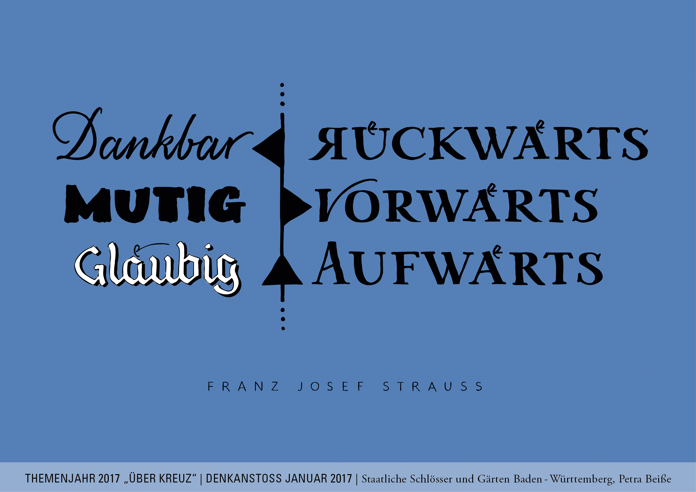 „Dankbar rückwärts, mutig vorwärts, gläubig aufwärts.“ Franz Josef Strauß, 1915-1988.