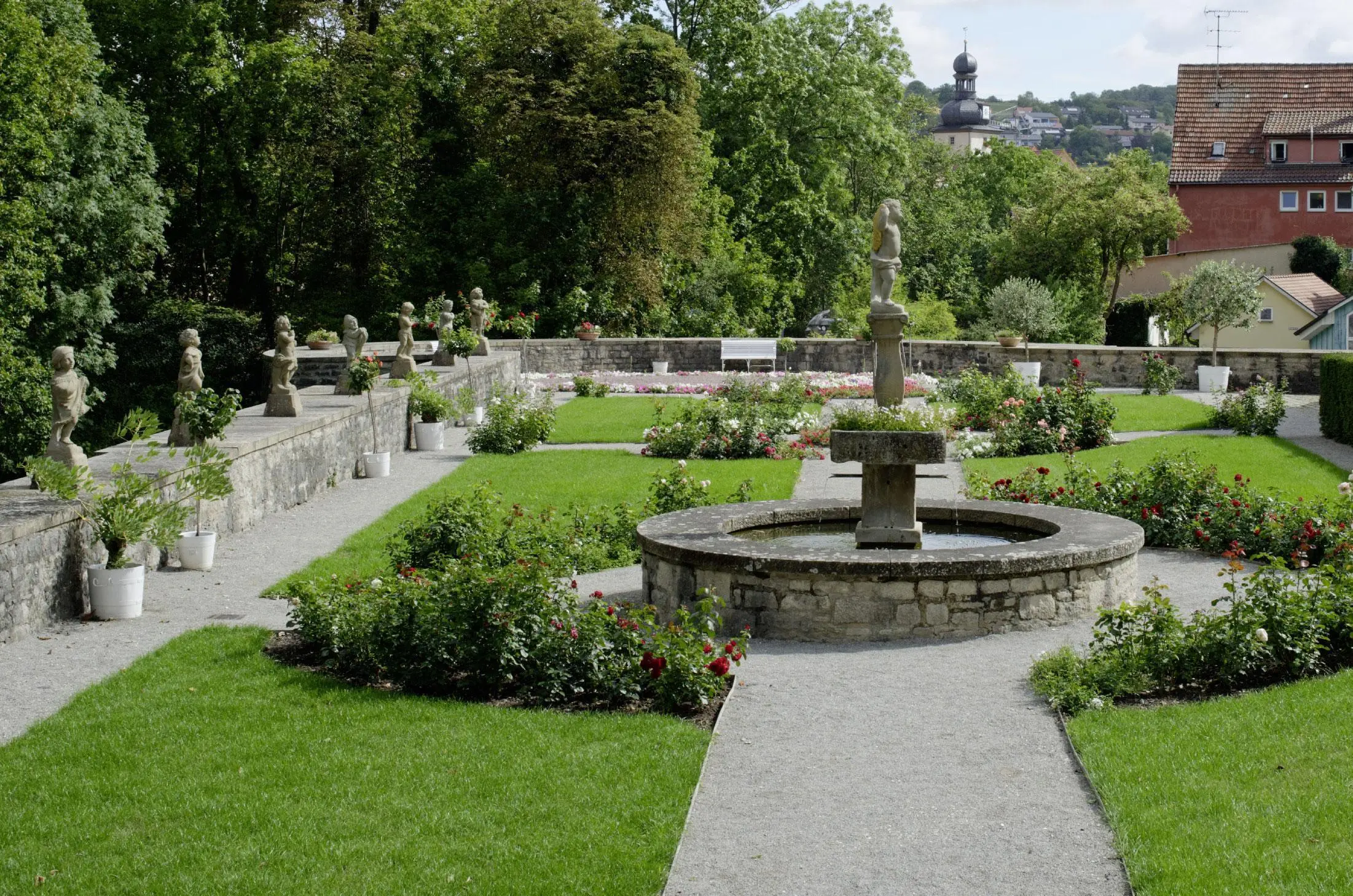 Der Rosengarten von Schloss Weikersheim. 1863 nach den Plänen des Hofgärtners Matthäus Lebl angelegt.