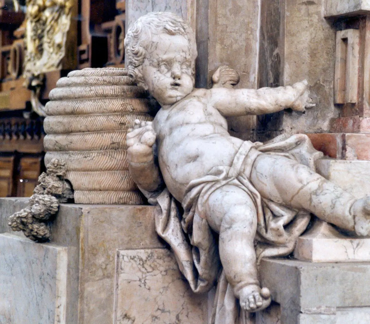 Der Salemer „Honigschlecker“ am marmornen Bienenstock.